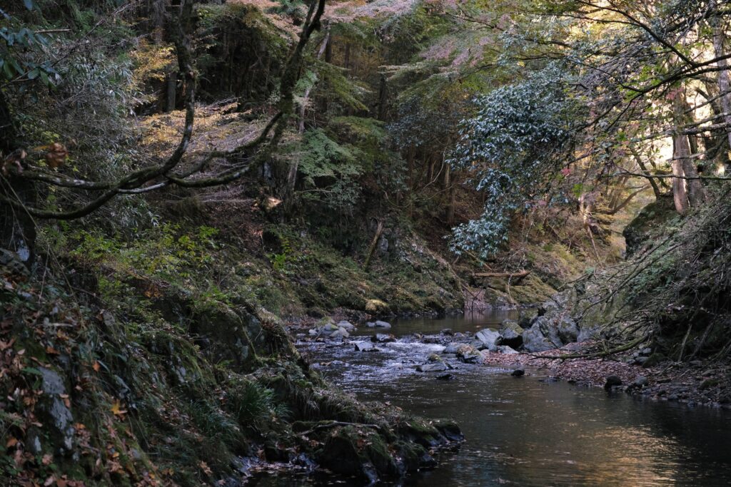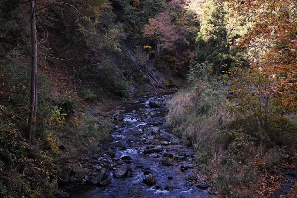 この川辺から見る紅葉の景色はほんとうに綺麗
